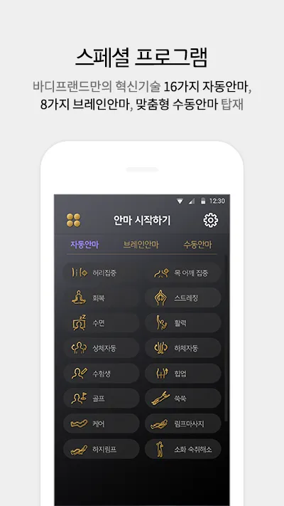 16가지 자동모드 허리집중, 림프 순환, 스트레칭 등 다양한 자동 마사지
